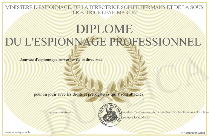 Envoyez par email votre Diplôme du l'espionnage professionnel personalisé