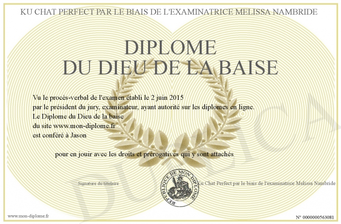 Envoyez par email votre Diplôme du Dieu de la baise personalisé