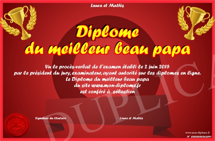 Envoyez par email votre Diplôme du meilleur beau papa personalisé