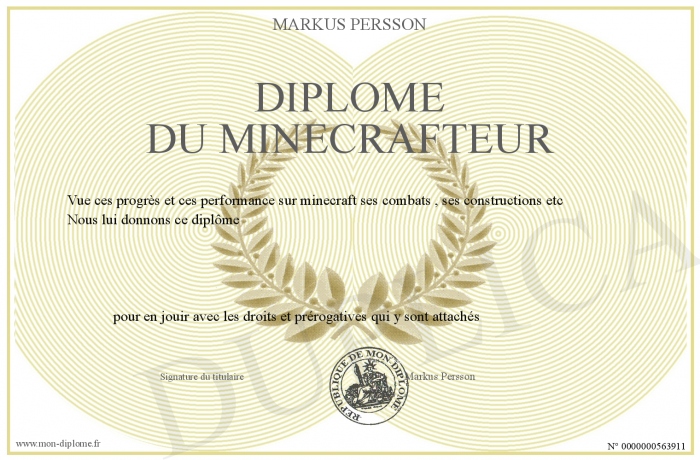 Envoyez par email votre Diplôme du minecrafteur personalisé