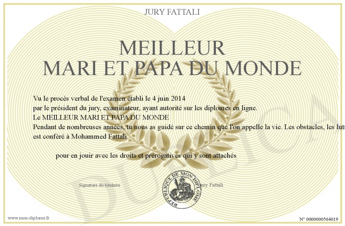 Envoyez par email votre MEILLEUR MARI ET PAPA DU MONDE personalisé