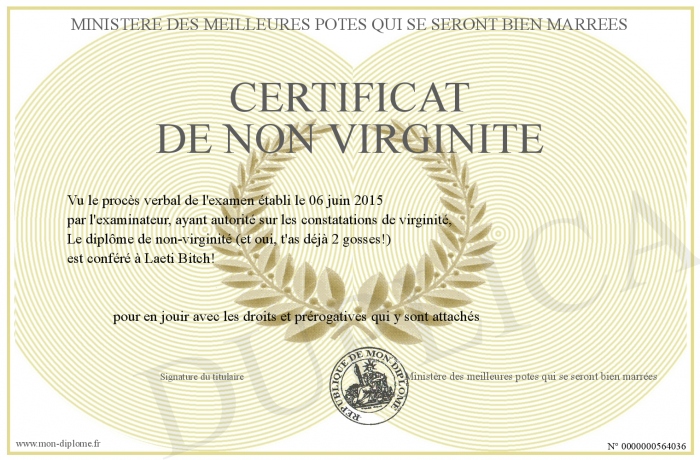 Envoyez par email votre certificat de non virginité personalisé