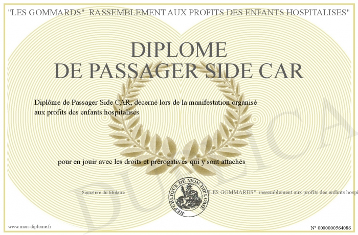 Envoyez par email votre Diplôme DE PASSAGER SIDE CAR personalisé