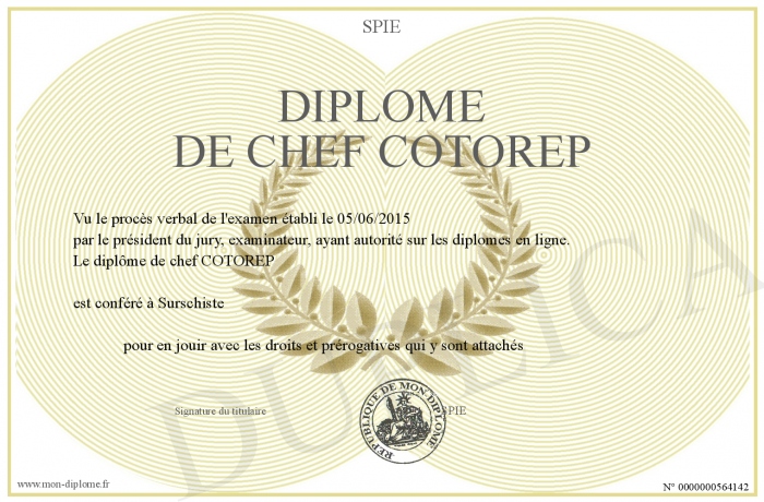 Envoyez par email votre Diplôme de Chef COTOREP personalisé