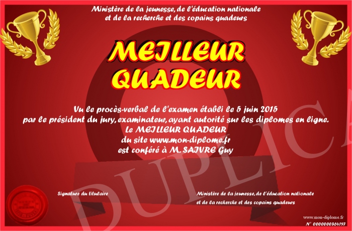Envoyez par email votre MEILLEUR QUADEUR personalisé