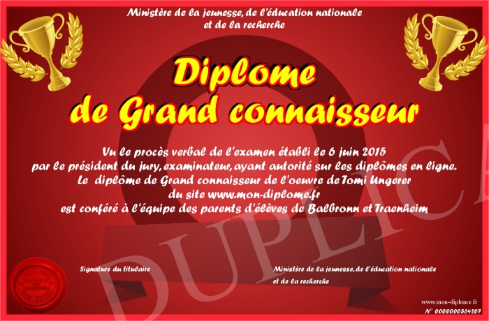 Envoyez par email votre Diplôme de Grand connaisseur personalisé