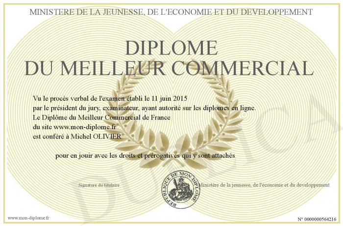 Envoyez par email votre Diplôme du meilleur commercial personalisé
