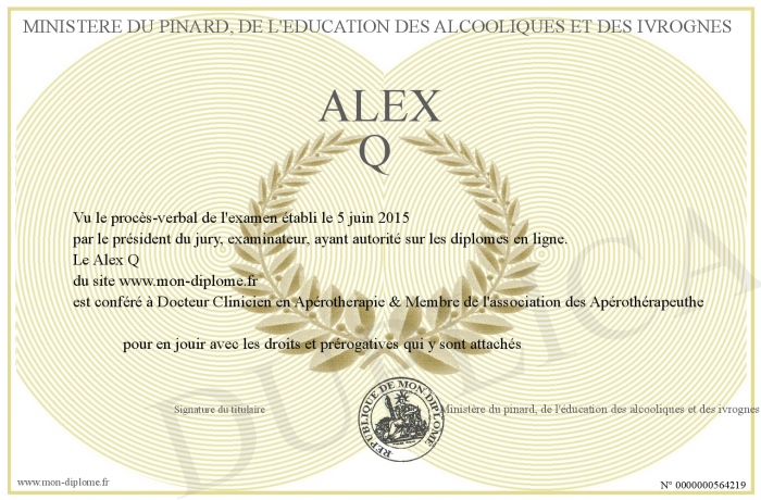 envoyé par le Ministère du pinard, de l'éducation des alcooliques et des ivrognes !
