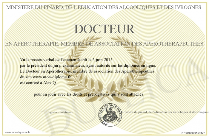 Envoyez par email votre Docteur en Apérotherapie, membre de association des Apérothérapeuthes personalisé