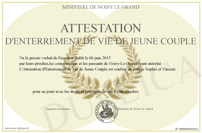 Envoyez par email votre Attestation d'Enterrement de Vie de Jeune Couple personalisé