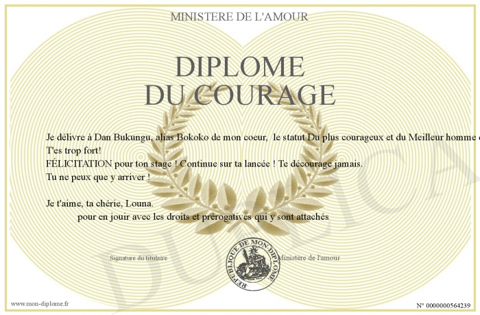 Envoyez par email votre Diplôme du courage personalisé