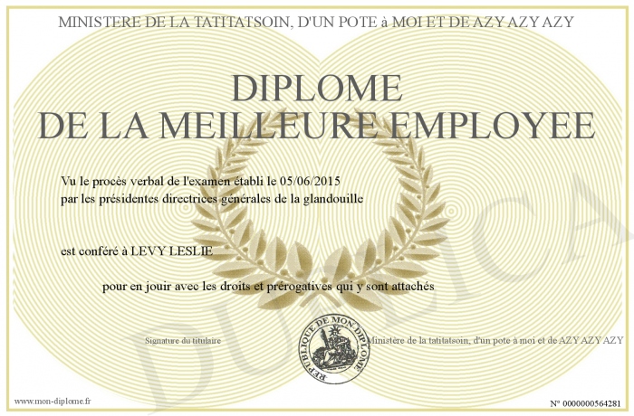 Envoyez par email votre Diplôme de la Meilleure employée personalisé