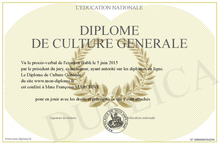 Envoyez par email votre Diplôme de Culture Générale personalisé