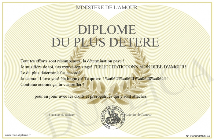 Envoyez par email votre Diplôme du plus DETERE personalisé