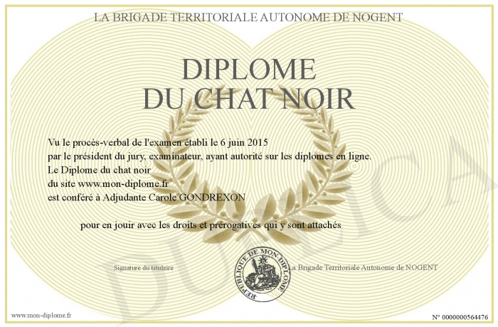 Envoyez par email votre Diplôme du chat noir personalisé