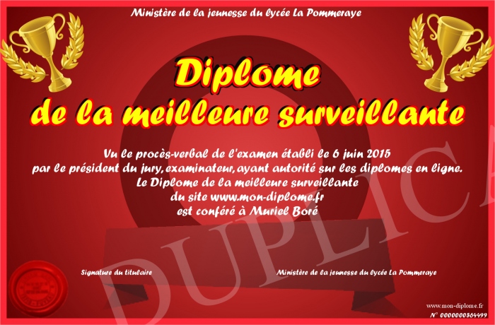 Envoyez par email votre Diplôme de la meilleure surveillante personalisé