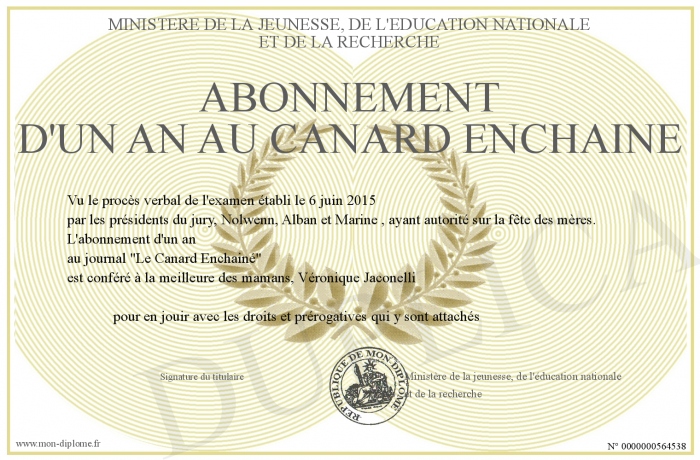 Envoyez par email votre Abonnement d'un an au Canard Enchainé personalisé