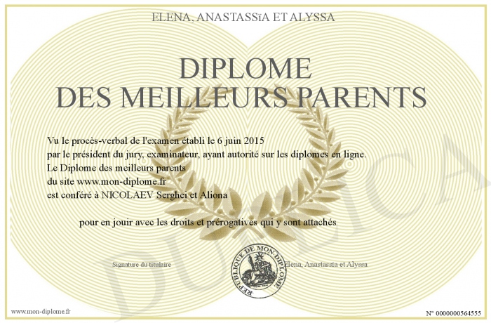 Envoyez par email votre Diplôme des meilleurs parents personalisé