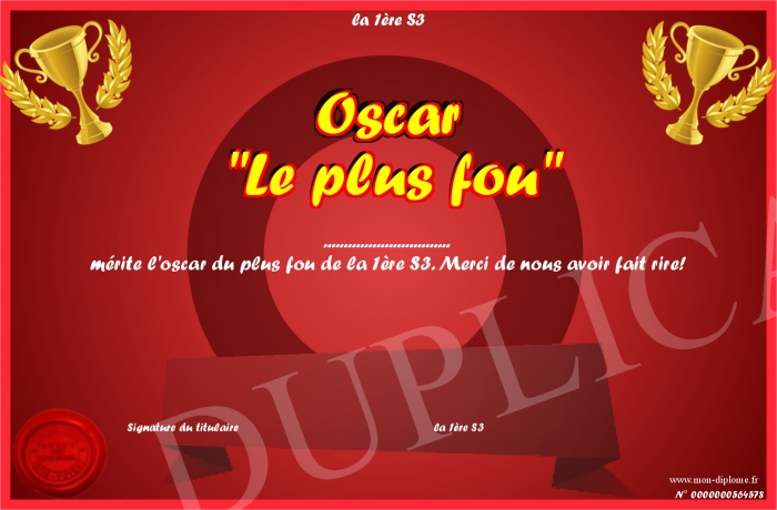 Envoyez par email votre Oscar -Le plus fou- personalisé
