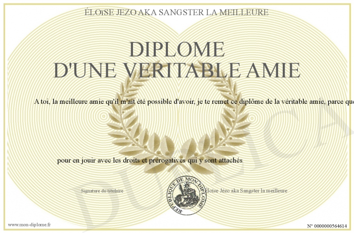 Envoyez par email votre Diplôme d'une véritable amie personalisé