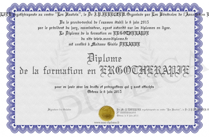 Envoyez par email votre Diplôme de la formation en ERGOTHERAPIE personalisé