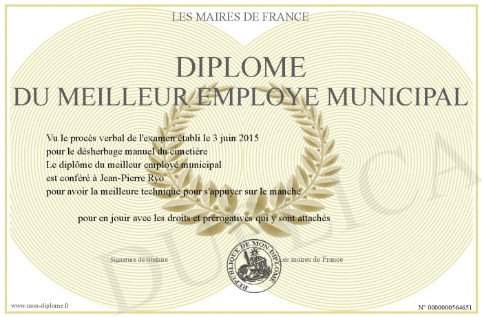 Envoyez par email votre diplôme du meilleur employé municipal personalisé