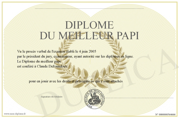 Envoyez par email votre Diplôme du meilleur papi personalisé