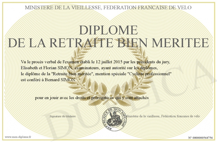 Envoyez par email votre Diplôme de la retraite bien méritée personalisé