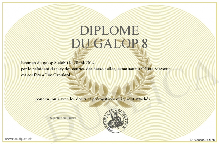 Envoyez par email votre Diplôme du Galop 8 personalisé