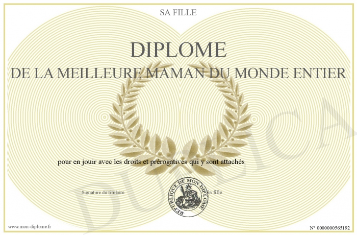 Envoyez par email votre Diplôme de la meilleure maman du monde entier personalisé