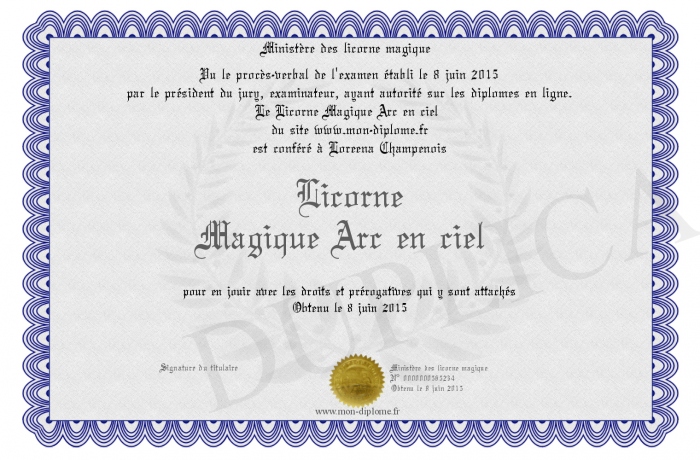 envoyé par le Ministère des licorne magique !