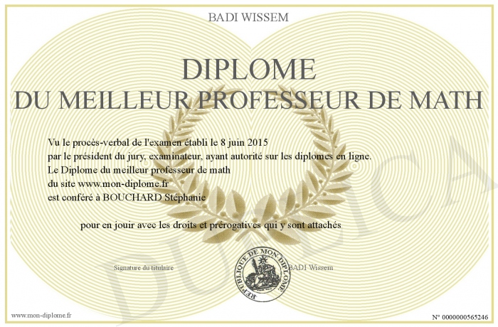 Envoyez par email votre Diplôme du meilleur professeur de math personalisé