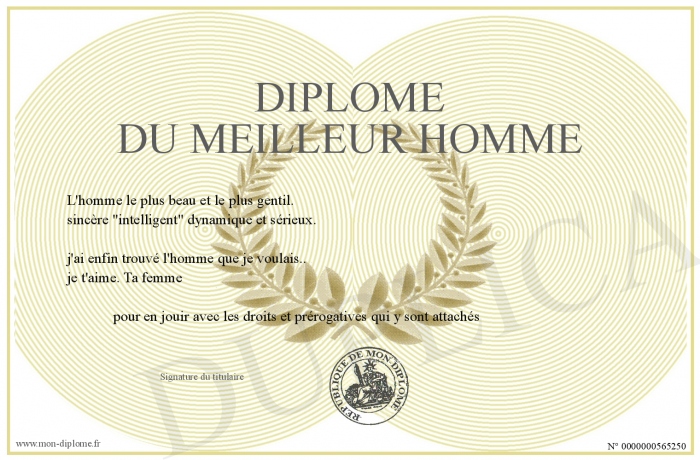 Envoyez par email votre Diplôme du meilleur homme personalisé