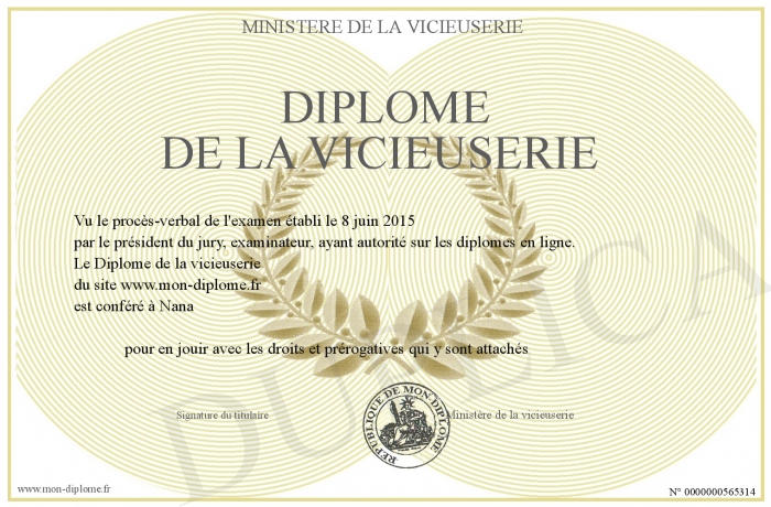 Envoyez par email votre Diplôme de la vicieuserie personalisé