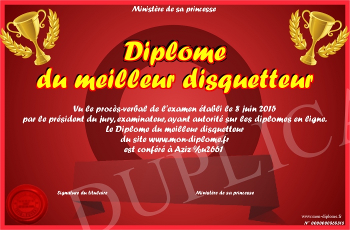 Envoyez par email votre Diplôme du meilleur disquetteur personalisé