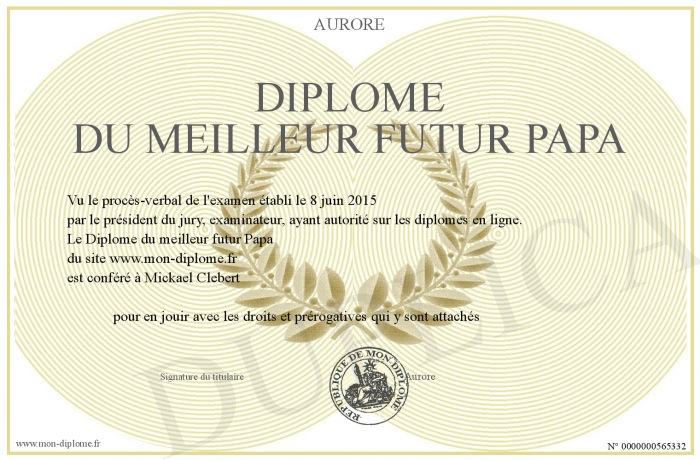Envoyez par email votre Diplôme du meilleur futur Papa personalisé