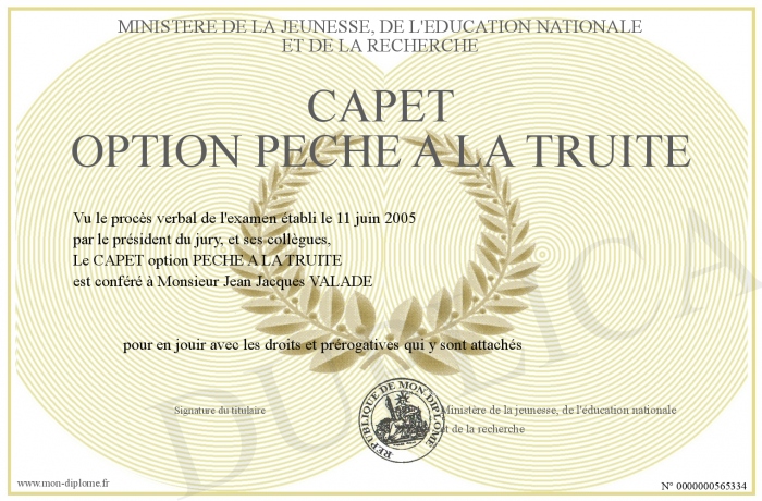 Envoyez par email votre CAPET option PECHE A LA TRUITE personalisé