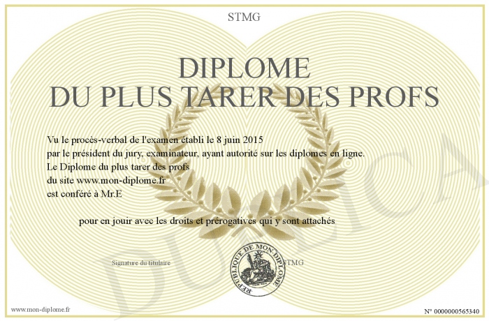 Envoyez par email votre Diplôme du plus tarer des profs personalisé