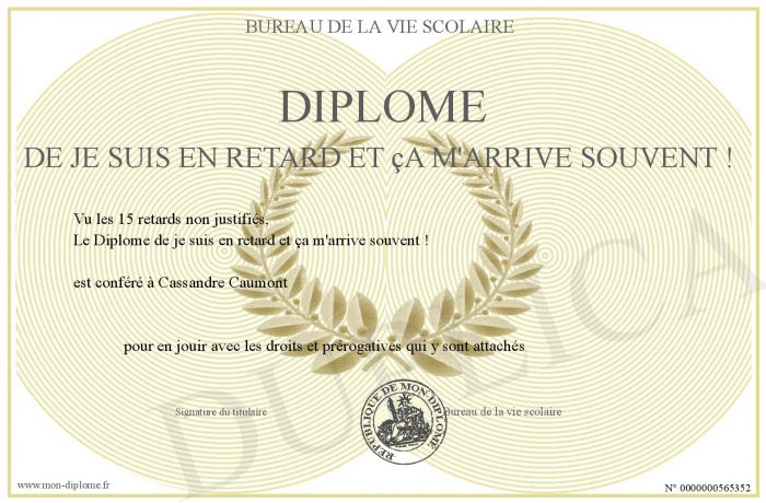 Envoyez par email votre Diplôme de je suis en retard et ça m'arrive souvent ! personalisé