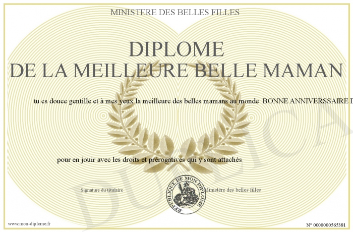 Envoyez par email votre Diplôme de la meilleure belle maman personalisé