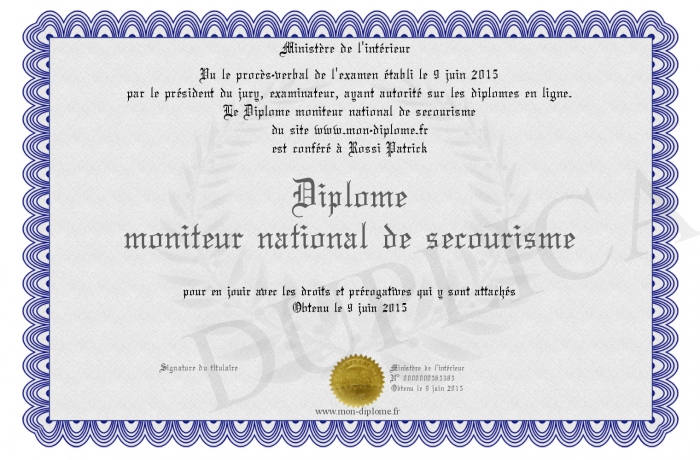 Envoyez par email votre Diplôme moniteur national de secourisme personalisé