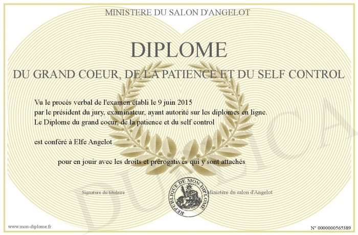 Envoyez par email votre Diplôme du grand coeur, de la patience et du self control personalisé