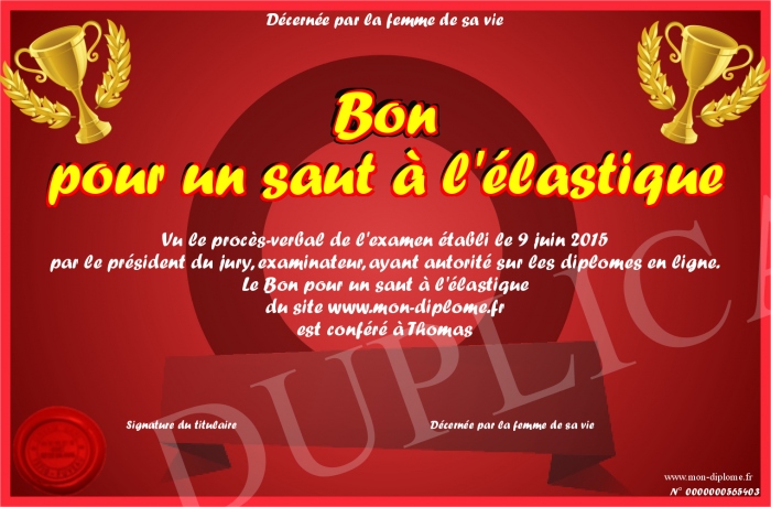 Envoyez par email votre Bon pour un saut à l'élastique personalisé