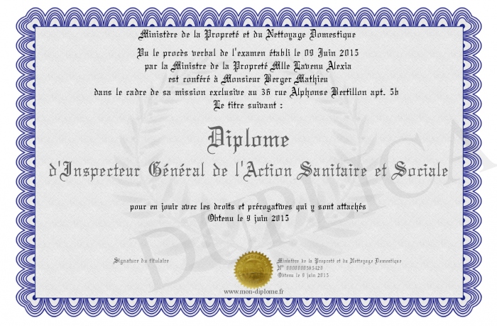 Envoyez par email votre Diplôme d'Inspecteur Général de l'Action Sanitaire et Sociale personalisé