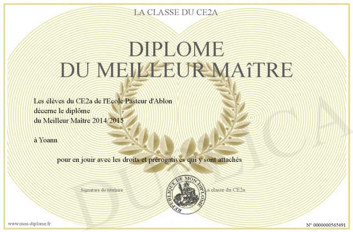 Envoyez par email votre Diplôme du Meilleur Maître personalisé