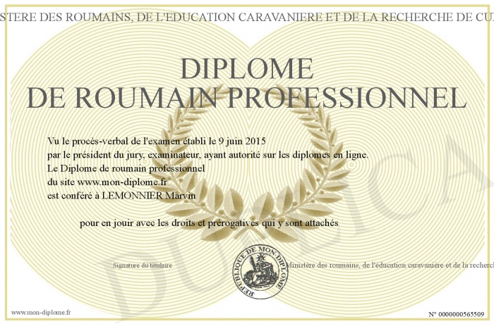 Envoyez par email votre Diplôme de roumain professionnel personalisé