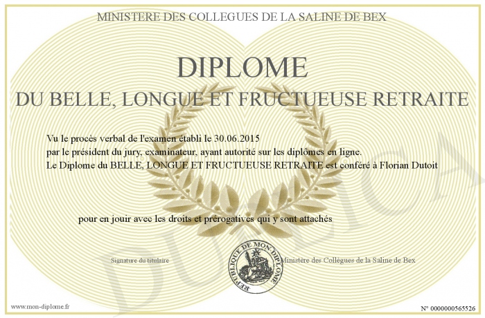 Envoyez par email votre Diplôme du BELLE, LONGUE ET FRUCTUEUSE RETRAITE personalisé