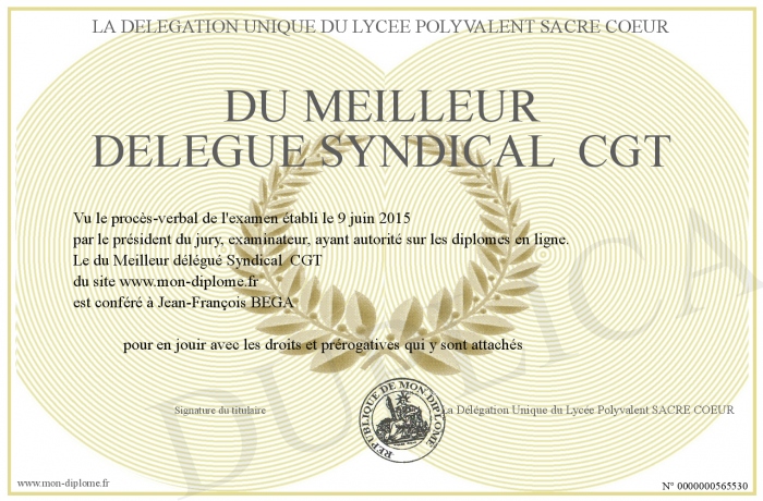 Envoyez par email votre du Meilleur délégué Syndical CGT personalisé