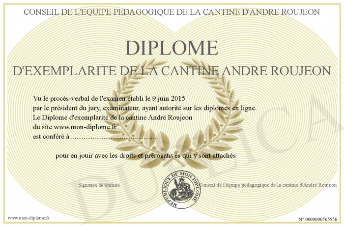 Envoyez par email votre Diplôme d'exemplarité de la cantine André Roujeon personalisé