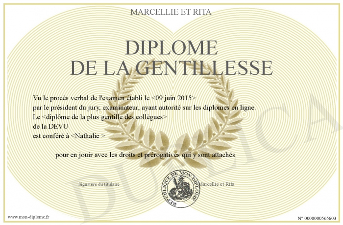 Envoyez par email votre diplôme de la gentillesse personalisé